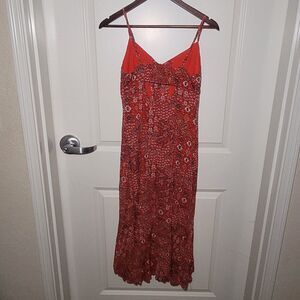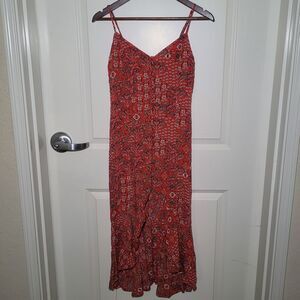 Anthropologie Abel The Label Red Floral Motif High Low Dress Sz XS Boho Sundress