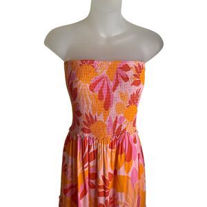 Abel The Label Strapless Maxi Dress Women's Small Floral Smocked Pink Orange Red