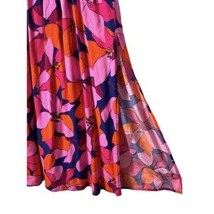 Abel the Label maxi skirt in size Small. Excellent preowned condition, worn and hand washed just a couple of times. Colors are magenta pink, navy blue and orange. Pull on style with long slits on each side. Smooth waist in front, elastic in the back for a good fit. Very lightweight, flowy rayon fabric.