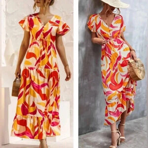Abel the Label Anthropologie Swish Flutter sleeve Hi & Lo Maxi Dress Size Small