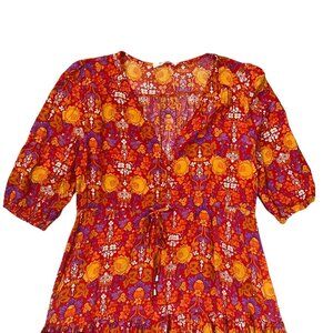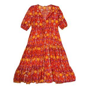 Abel the Label Cottagecore Floral Tiered Midi Dress S Red Fall Prairie Peasant