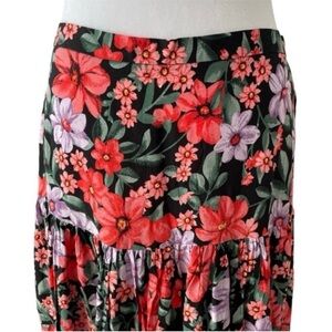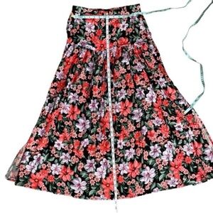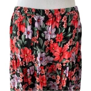 NWT never worn Abel The Label maxi skirt, black with pink and purple floral print. Pull-on, elastic on back waistband. Slit on each side. Brand retails at Anthropologie. Beautiful skirt for spring and summer! Clean smoke free home, measurements are approximate.