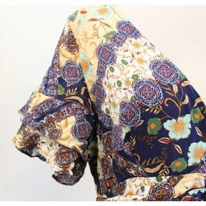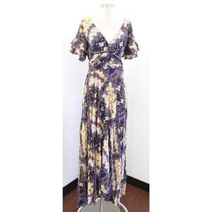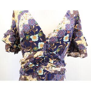 Abel the Label Navy Blue Floral Asymmetrical Hem Maxi Dress Size M Tie Waist