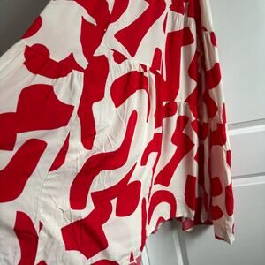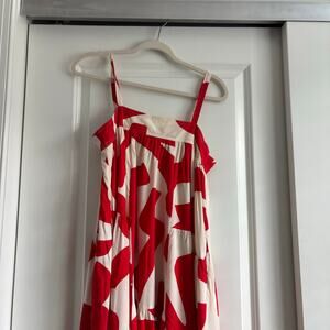 Abel the Label Red and White Tiered Maxi Dress Sz S Flowy Beachy Resort