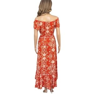 Abel the Label Rustica Boho Floral Rust orange red hi-low asymmetric midi dress Off Shoulder Ruffle