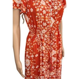 Abel the Label Rustica Floral orange hi-low midi dress Off Shoulder Ruffle Small