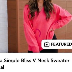 Abela V neck sweater cuffed sleeves, soft material,winter size Small Coral
