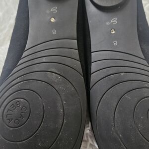 These Abella black flats are crafted with a soft, suede-like material and feature a charming floral embellishment on the toe. The rounded toe design and flat sole offer both style and comfort, making them a versatile addition to any wardrobe.