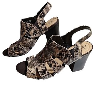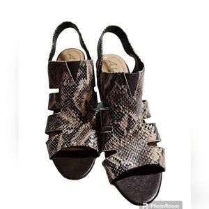 Abella Carmine True Comfort Black & Brown snake Print Heel Sandal Size 7.5