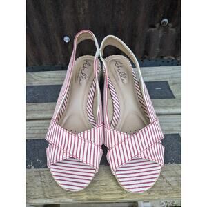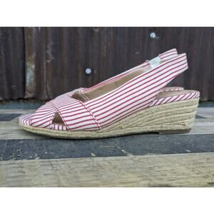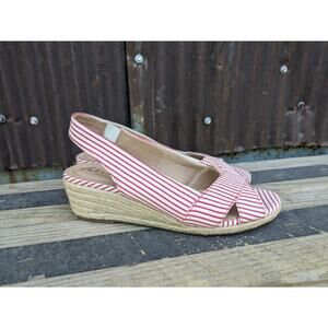 Abella Espadrille Sandal Size 8 Red Stripe Wedge Sailor Nautical Coastal Cowgirl