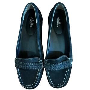 Abella Glena Black Suede Leather Loafers Women’s 8.5 Cushioned Comfort Flats