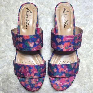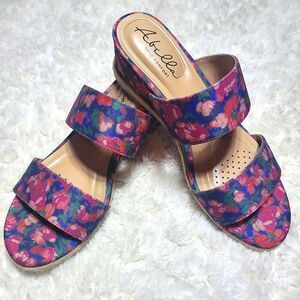 Abella Shayla Espadrille Floral Wedge Sandal; Simplified down to a two-band silhouette for an easy-to-match design, the Shayla slide sandals from Abella are covered in soft canvas and trimmed with a single braid of espadrille along the midsole. The brand's signature True Comfort footbed ensures easygoing steps. FEATURES: ♡ Size: US Women's 8.5 ♡ Canvas fabric upper ♡ Slip-on with elastic inserts ♡ Round open toe with moisture-wicking perforations ♡ Synthetic lining with breathable groove channels ♡ True Comfort custom-molded footbed with 5mm cushioned pads ♡ 2¼" covered wedge heel with espadrille trim ♡ Synthetic sole Condition: Sandals are in great used condition with only minimal signs of wear on the bottom. Overall, they're in great condition! If you have any questions, please let me know 😊
