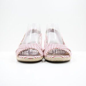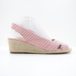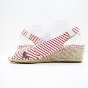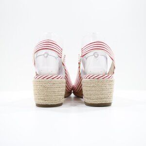 Abella Shiloh Red & Ivory Striped Canvas 2" Wedge Heel Slingback Espadrilles - 9
