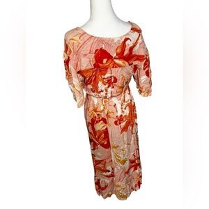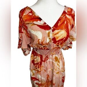 Abel the Label Flower Bomb ShirtDress Orange Pink Floral Anthropologie Smocked m