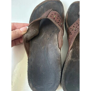 Abeo Abbie Women's Sandals Size 8 Brown Leather Stud Laser Cut Thong Flip Flops