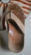Men's leather flip flop with leather upper and leather footbed. Neutral tan color. Rubber sole. Pre-owned with some markings highlighted in photos. Size 12 narrow.