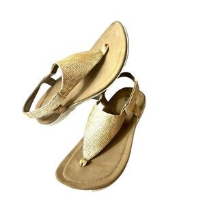 Abeo Bio.System Women's Size 9.5N Gold Faux Leather Sling Back Thong Summer Sandals