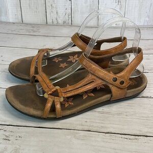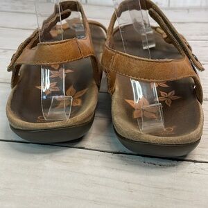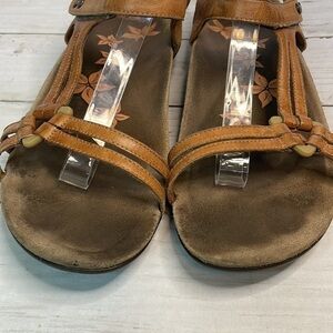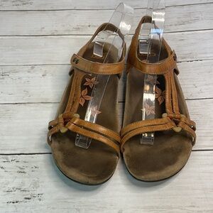 Tan leather strappy open toe sandals. built-in orthotic comfort ABEO B.I.O.system® Oasis sandal with metatarsal support.