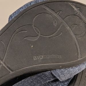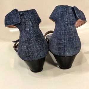 Stylish blue sandals with ankle strap. Comfortable wedge design. Perfect for casual wear.