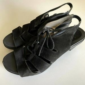 Abeo Georgia Neutral Black Nubuck Lace Up Sandal Open Toe Slingback 7 N