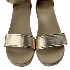 Abeo Riviera Leather Upper Metallic Gold Ankle Platform Wedge Sandals Size 9.5