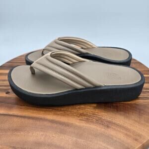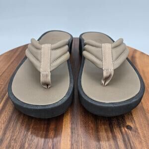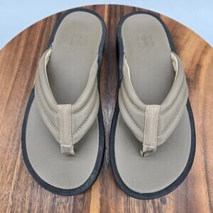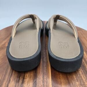 Abeo Sandals Womens 7 Neutral Taupe Leather Slip On Comfort Thong Wedge Slides