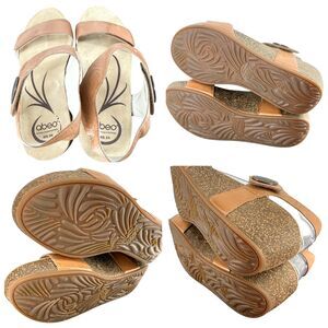 Abeo Una Sandal Women's 8.5 N Tan Leather Adjustable Strap Wedge Platform Shoe