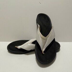 Abeo Womens Leather Orthotic Thong Sandals Size 10 Black & White