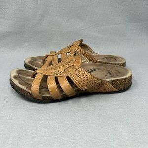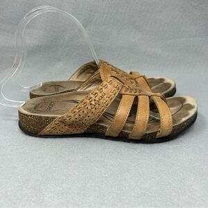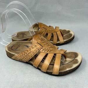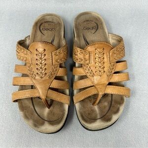 Abeo Womens Mandalay Cork Brown Strappy Leather Thong Sandal Size 7.