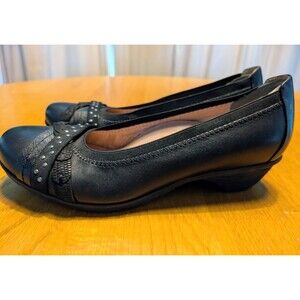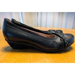 The Abeo Women's Nellie Pump in size 6N is a stylish and comfortable heel designed for casual occasions. Featuring a low block heel and slip-on closure, these brown leather pumps are perfect for all-day wear. The studded accents and closed toe add a touch of edge to the classic pump style. With a comfortable insole made of leather and a rubber outsole, these shoes provide both style and support for the modern woman. Perfect for summer, fall, and spring seasons, these pumps are a versatile addition to any wardrobe.