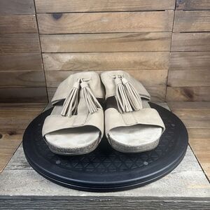 Abeo Womens Size 9 Uplift Platform Wedge Sandals Beige Open Toe Tasseled Comfort