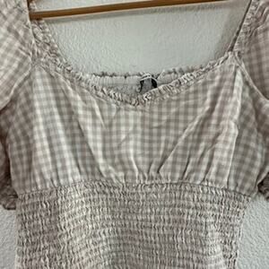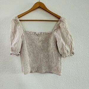 Abercombie & Fitch Cream Checkered Smocked Waist Crop Top Large