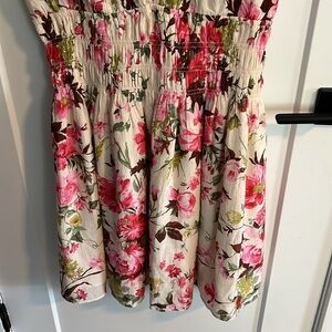 Abercombie & Fitch Smocked Plunge Sleeveless Dress Sz Large Pink Floral V Neck