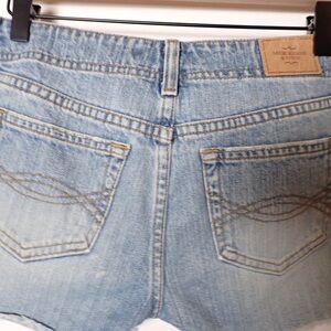 Abercrombie & Fitch, vintage, distressed denim, cut-off shorts, size 6, frayed edges, casual wear, high-quality denim, worn-in look, laid-back style, summer fashion.