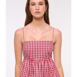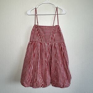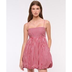 Abercombie & Fitch Womens Babydoll Bubble Hem Mini Red Gingham Dress XL New M25
