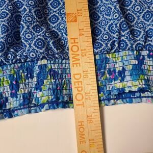 Elevate your bohemian style with this enchanting Abercrombie & Fitch peasant top. Made from lightweight and flowy fabric, this top features a beautiful blue floral design that will make you feel like a fairy in the woods. The semi-sheer fabric adds a touch of allure, perfect for creating a whimsical and romantic look.