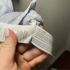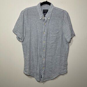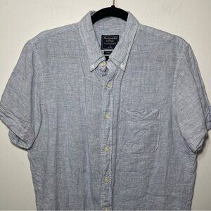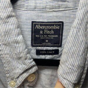 Abercombie & Fitch men blue fine striped nautical 100% linen button down shirt M