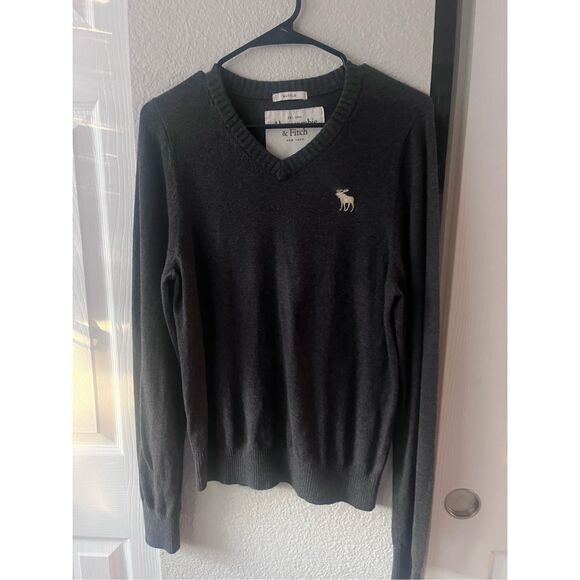 Abercombie and Fitch Grey Y2K V Neck Sweater