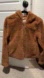 warm tan fleece jacket with a stylish zip closure. soft and fuzzy on the outside, and a kind of satin inside- as well as the hoodie!