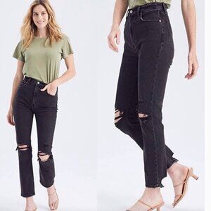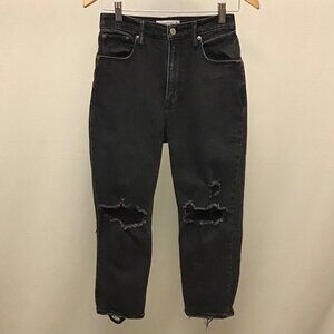 Abercrombie & Fitch A&F Size 2 Extra Short (26XS) Ankle Straight Ultra High Rise Curve Love Women’s Jeans In Faded Black, Distressed, Frayed Hems.