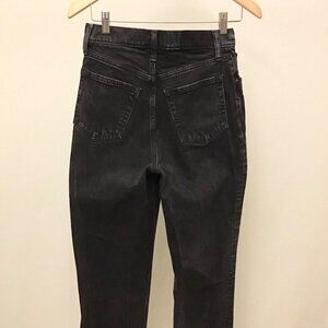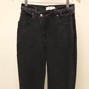 Abercrombie & Fitch A&F Size 4 Short (27) 90s Straight Ultra High Rise Curve Love Women’s Jeans, Washed Faded Black, Crossover Waistband. Preowned. Nice condition. No stains or flaws. The material tag is missing and they have a tiny bit of stretch.