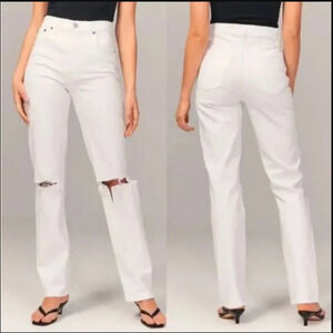 Abercrombie 90s Straight Ultra High Rise White Jeans Womens Size 32 14 Long