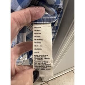The product is a stylish Abercrombie and Fitch blue plaid long sleeve button-up muscle shirt in size XL. Made of cotton material, this shirt is perfect for various occasions such as travel, casual outings, parties, and workwear. With a collared neckline, button closure, and chest size of 44 inches, it offers a classic, preppy, and western theme suitable for all seasons. The regular fit and easy care features make it a versatile and comfortable addition to any man's wardrobe.
