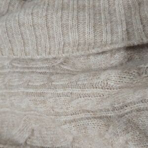 This cream cardigan features a cozy, chunky knit texture perfect for layering. Its open-front design make it a versatile addition to any wardrobe. The full-length sleeves add to its warm and inviting appeal.