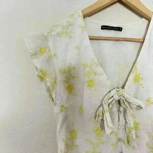 Abercrombie And Fitch Floral Deep V Neck Button Front Cropped Shirt Size Small