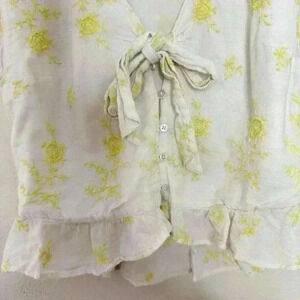 This Abercrombie & Fitch shirt is a perfect addition to any wardrobe. The multicolor floral pattern adds a bohemian touch to the classic style. The deep V-neckline and button front create a stylish and secure fit. The short cap sleeves and cropped length make it perfect for warmer weather. The shirt is made from high-quality materials and features tie and button accents. It comes in size small and is suitable for regular size types. This blouse is perfect for women who want to add a colorful and stylish touch to their outfit.