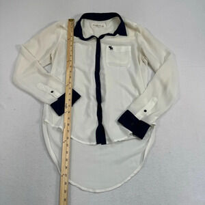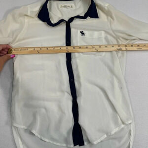 Abercrombie And Fitch Sheer Button Up Blouse Womens SZ Small Ivory Blue Collard