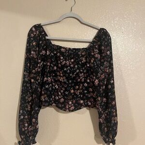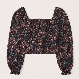 Abercrombie Black Floral LongSleeve Squareneck Top Size S