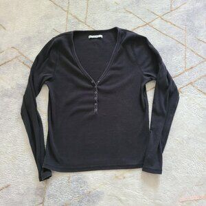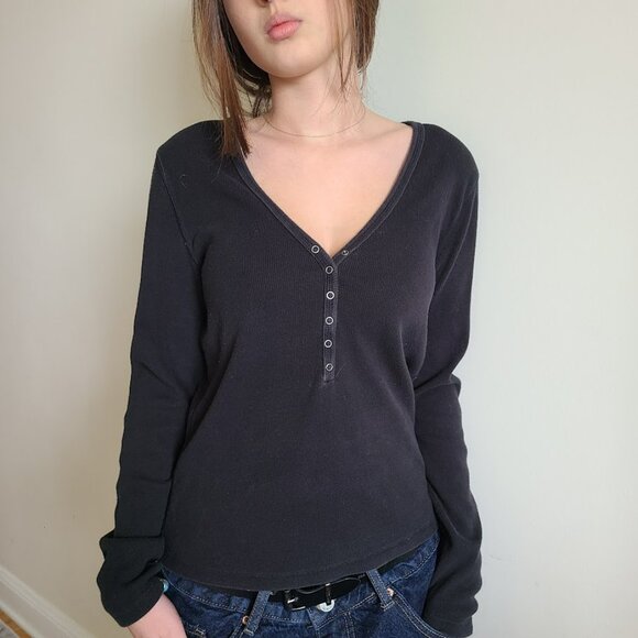 Abercrombie Black Ribbed Henley | Gothic Witchy Y2K Top Women’s L