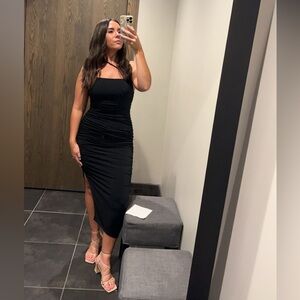 A&F Black Strappy Wedding Guest Dress. Size Small petite. Midi length. I’m 5’3 for reference. The most comfortable dress I’ve ever worn!